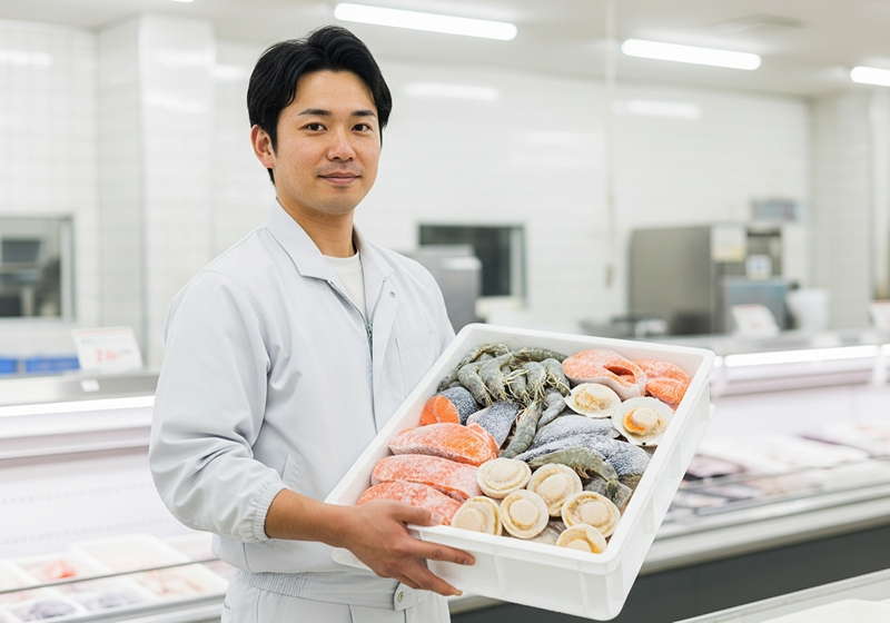 冷凍水産品を、スーパー・飲食店・病院・福祉施設などへ卸売りしています。